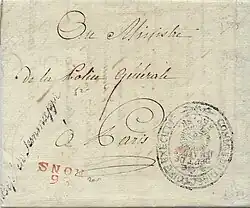 - ↑ Le Livre de poste ou Départ de Paris des courriers de la poste aux lettres sur Gallica, 1811, p. 89.