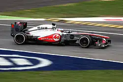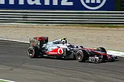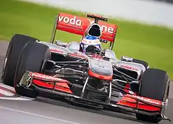 Le , Jenson Button signe chez McLaren[27] et rejoint son compatriote Lewis Hamilton. Lors du Grand Prix inaugural, à Bahreïn, il se classe septième alors que son coéquipier Lewis Hamilton monte sur la troisième marche du podium. Le , lors du second Grand Prix de la saison en Australie, il remporte la victoire, sa seconde consécutive à l'Albert Park. Lors du Grand Prix de Malaisie, il termine huitième de l'épreuve après être parti en fond de grille. En Chine, Button remporte sa seconde victoire de la saison et prend la tête du championnat qu'il conserve en terminant cinquième en Espagne. Il abandonne à Monaco, où il avait gagné l'année précédente, à cause d'une erreur de ses mécaniciens ayant entraîné une surchauffe moteur, perdant ainsi la tête du championnat. En Turquie, profitant de l'accrochage entre les deux Red Bull en tête, il se classe second derrière son coéquipier et remonte à la seconde place du championnat. Il termine à nouveau second au Canada, à nouveau derrière son coéquipier, puis termine troisième en Europe. À Silverstone, parti de la quatorzième position, il termine au pied du podium. En Allemagne, il finit une nouvelle fois dans les roues de son coéquipier, à la cinquième place. Hamilton et Button occupent alors les deux premières places du championnat pilotes tandis que McLaren mène le championnat constructeurs.