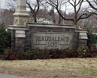 La ville tire son nom d'un mythe à propos de l'un des premiers habitants des lieux, Charles Belknap Tanner, éleveur de porcs. L'un de ses cochons, qui s'appelait Jérusalem, s'échappa dans la forêt voisine puis devint agressif et sauvage. Tanner commença à avertir les jeunes enfants qui pénétraient par effraction sur sa propriété de se « tenir hors du terrain boisé de Jérusalem » (Jerusalem's Wood Lot en anglais) de peur que le cochon ne les dévore. Finalement, l'expression « Jerusalem's Lot » a été adoptée comme nom de la ville[3].
