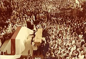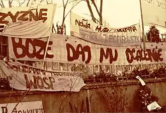 Le , plus de 500 000 personnes[source insuffisante][6] rendent un dernier hommage au père Jerzy Popiełuszko, dont les obsèques célébrées en l'église Saint-Stanislas-Kostka de Varsovie insufflent une seconde vie au syndicat Solidarność alors bâillonné.