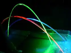 Les fontaines lumineuses exploitent la capacité de guider la lumière des jets d'eau, à la manière des fibres optiques