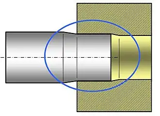 - avec serrage : lorsque la pièce contenant est plus petite que la pièce contenue, le montage ne peut se faire qu'après déformation locale des pièces. C'est le cas du bouchon de liège dans le goulot de bouteille, ou de la frette.