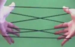 Voir ici trois figures inventées par Yukio Shishido (X, Haxagram, Pentagram) : String Figures - ↑ « Les jeux de ficelle : aspects culturels et cognitifs d'une pratique à caractère mathématique »