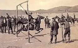 - (en) Cet article est partiellement ou en totalité issu de l’article de Wikipédia en anglais intitulé « Goose pulling » (voir la liste des auteurs).