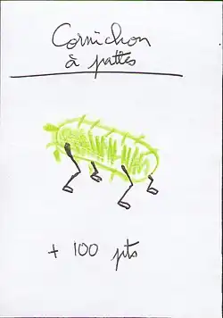 En début de partie, chaque joueur prend donc quelques cartes vierges, qu'il remplit sans les dévoiler aux autres joueurs. Les cartes n'ont pas de structure imposée, mais une convention courante est de les présenter en trois parties : un titre, un dessin et un descriptif. Le titre identifie la carte de manière unique. Le dessin illustre le rôle de la carte. Il peut être aussi simple qu'un bonhomme en fil-de-fer et aussi sophistiqué que le souhaite son créateur. Le descriptif explique l'effet de la carte. L'effet peut être, par exemple, un gain ou une perte de points, une action qui influe sur le jeu (passer un tour, perdre une carte...), une action qui n'influe pas directement sur le jeu (prendre un accent, faire le café...). Pour ajouter de la profondeur au jeu, il est souhaitable que chaque action ait une raison, aussi absurde soit-elle (Par exemple : « Votre livraison de bananes a du retard ; vous perdez 200 points »). Les seules limites sont les règles initiales et l'imagination des joueurs.