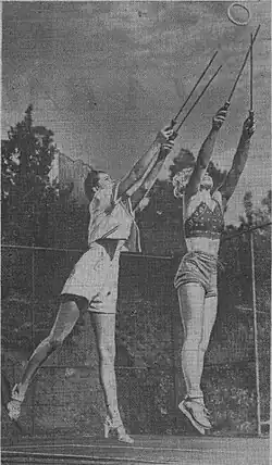Le matériel se compose de deux paires de baguettes flexibles et légères longues de 50 à 60 centimètres et d’un ou deux petits cerceaux, généralement de 20 à 25 centimètres de diamètre. Les poignées des baguettes et les cerceaux sont traditionnellement recouverts d’une ou deux bandes de tissu bicolore enroulées en spirale. Les extrémités des bandes entourant le cerceau peuvent pendre librement, afin de ralentir un peu sa course. Dès les années 1840, l’habitude est prise d’utiliser des baguettes et un cerceau festonnés de bleu pour l’un des joueurs, et de rose pour l’autre[1].