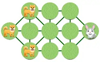- Les chiens gagnent si le lièvre ne peut plus se déplacer.
