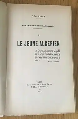 L’ouvrage de Ferhat Abbas Le Jeune-Algérien, paru en 1931, fait référence à ce mouvement.