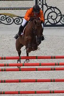 - ↑ « Jeux équestres mondiaux. Le cheval meurt, la cavalière blessée », Ouest-France, (consulté le ).