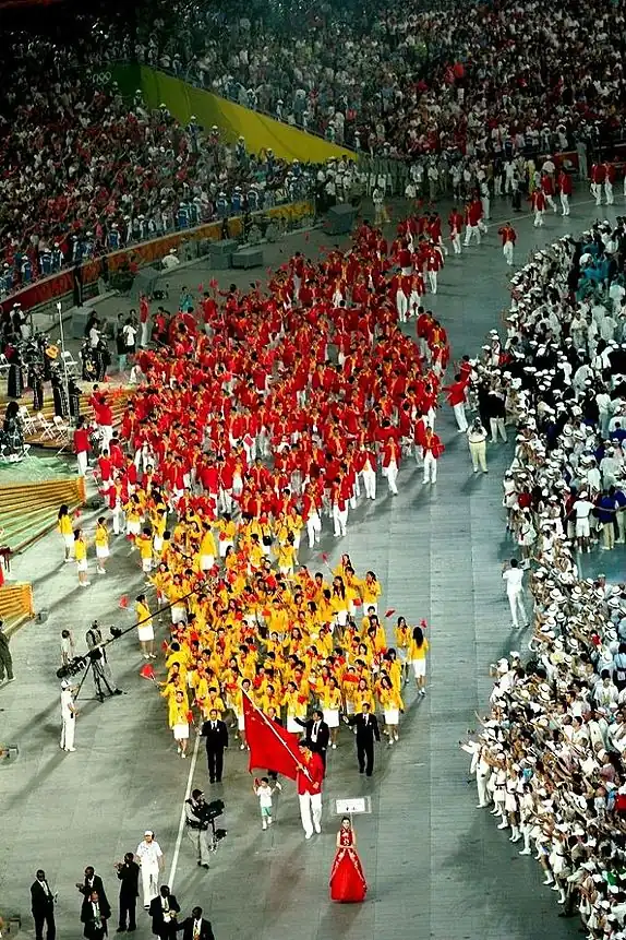La cérémonie d'ouverture de ces Jeux a débuté à 8 heures 08 du soir heure locale[57] (fuseau horaire UTC+8), soit le 08/08/08 à 8 h 8 du soir +08:00[58], le huit étant un symbole de prospérité et d'infini dans la culture chinoise. Le spectacle, réalisé par le réalisateur chinois Zhang Yimou, a représenté différentes périodes de l'histoire de la Chine.