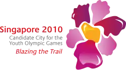 La ville de Singapour, ayant montré son désir d’accueillir les premiers JOJ[11], a lancé quelques jours avant le dépôt officiel de sa candidature un logo et un site Web afin de rallier les Singapouriens au support du projet et leur permettre de signer en sa faveur[26]. Le logo de la candidature, représentant la Vanda Miss Joaquim, la fleur nationale de la cité-état, était accompagné du slogan Blazing the Trail (Ouvrir la voie), qui symbolise l’esprit volontaire de Singapour[26].