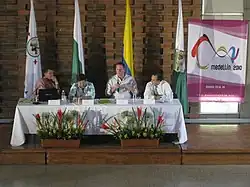 Le maire de Medellín, Sergio Fajardo, le président du comité olympique colombien, Andrés Botero, le directeur d'Indeportes Antioquia, Juan Fernando Mesa, le directeur du comité de soutien au projet de Medellín, Diego Palacios, et la directrice de l'Institut du Sport et la Récréation de Medellín (INDER), Alicia Eugenia Vargas, sont les membres de la délégation colombienne qui voyagea jusqu'à Buenos Aires pour défendre la candidature de Medellín[4].