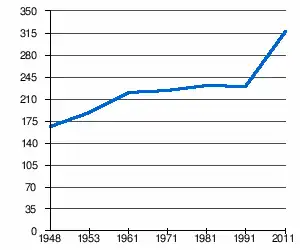 - 1 2 (sq) « Évolution de la population 1948-2011 », sur pop-stat.mashke.org (consulté le ).
