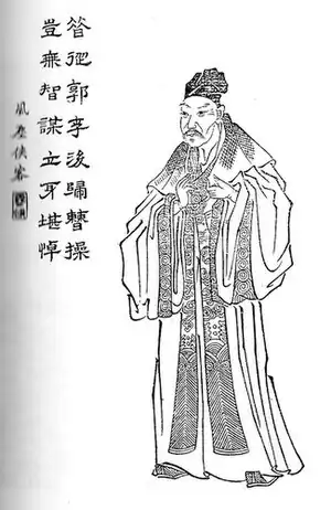 Jia Xu (147 - ) était un stratège chinois lors de la fin de la dynastie Han et du début de la période des Trois Royaumes en Chine antique. Il servit un grand nombre de seigneurs de guerre tels que Dong Zhuo, Li Jue, Duan Wei, Zhang Xiu et Cao Cao, puis occupa des fonctions sous les bannières du royaume de Wei. Hautement respecté, il fut reconnu pour sa franchise et pour ses excellents conseils militaires.