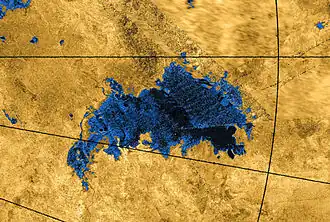 - ↑ « Titan: Jingpo Lacus », Gazetteer of Planetary Nomenclature (consulté le )