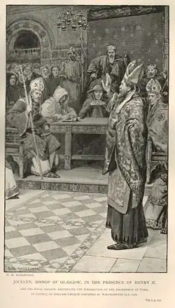 Jocelin ne se soumit ni à l'autorité de Roger de Pont L'Evêque, archevêque d'York, ni même à celle de Richard de Douvres, Archevêque de Cantorbéry : il réussit à obtenir une bulle papale, faisant de l'évêché de Glasgow une « fille particulière » du patriarcat[23],[24]. Jocelin semble ne s'être intéressé qu'au maintien de l'indépendance de son propre évêché, et pas particulièrement à celle des autres évêchés d'Écosse. Le , avec d'autres magnats (membres de la grande noblesse) et prélats, Jocelin se rendit à la cour du roi Henri pour se soumettre à son autorité, comme stipulé dans le traité. Cependant, cela ne se fit pas de manière complète et ainsi, avec cinq autres évêques, la question de l'assujettissement à l'Église d'Angleterre fut reportée[25]. Jocelin retourna à la cour en pour les affaires de l'Église : lorsque l'archevêque d'York fit face à Jocelin, demandant la soumission de l'évêché de Glasgow à l'archevêché d'York, celui-ci refusa de reconnaître cette part du traité et produisit la bulle papale déclarant Glasgow « fille particulière » de l'Église[3].