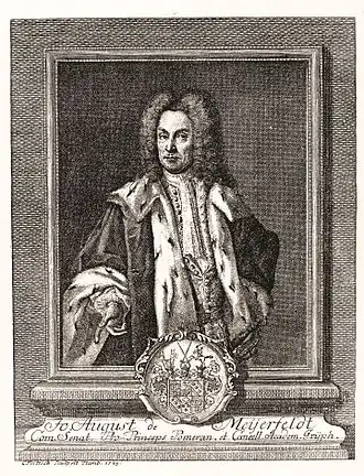 - Robert Oldach: Meyerfeldt, Johann August von d. Ä. (1666–1749). In: Dirk Alvermann, Nils Jörn (Hrsg.): Biographisches Lexikon für Pommern. Band 2 (= Veröffentlichungen der Historischen Kommission für Pommern. Reihe V, Band 48,2). Böhlau Verlag, Köln Weimar Wien 2015, (ISBN 978-3-412-22541-4), S. 167–171.