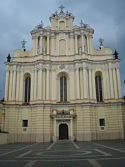 - Façade et fronton de l'église Saint-Jean-Baptiste-et-Saint-Jean-l'Évangéliste de Vilnius (1738-1748)