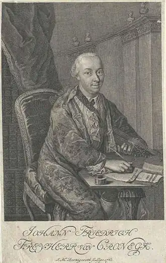 Johann Friedrich von Cronegk, né le à Ansbach et mort le à Nuremberg, est un dramaturge, poète et essayiste allemand.