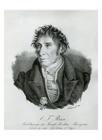 - (de) Cet article est partiellement ou en totalité issu de l’article de Wikipédia en allemand intitulé « Johann Karl Friedrich Riese » (voir la liste des auteurs).