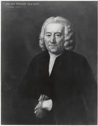 - ↑ « J. Rudolph. Zwinger olim præceptoris nostri, qui et ipse supervivit, beatus senex, De usu et functionibus cerebri humani ». Albrecht von Haller, Bibliotheca anatomica, t. 2, Bâle, Orell, Gessner, Fuessli et associés, 1776, p. 74 : « notre maître… heureux vieillard ».