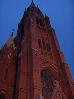 Elle fut construite en 1894 par l'architecte Theodor Sørensen, en brique, dans un style néo-gothique. Elle peut accueillir 1 250 personnes.