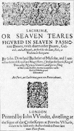 Son œuvre instrumentale la plus connue, Lachrimæ ou Seaven Teares Figured in Seaven Passionate Pavans ... (Pleurs, ou Sept larmes représentées par sept pavanes passionnées ...) est un groupe de sept pavanes pour cinq violes (donc à 5 parties instrumentales) avec un luth soutenant cette polyphonie, publiée en 1604. Chacune d'entre elles étant fondée sur le "motif des larmes" Flow, my tears (« Coulez, mes larmes »), quatre notes descendantes qui proviennent d'une pièce de luth que Dowland avait originellement composée dès les années 1590[4]. Cette pièce devint l'une des plus connues de la musique pour ensemble instrumental de cette époque. Sa pavane Lachrymæ antiquæ fut aussi l'un des grands succès du XVIIe siècle.