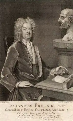 - ↑ (en) Philip Shorr, « Sir John Freind (1675-1728) M. D. Pioneer Historian of Medicine », Isis, vol. 27, no 3, , p. 453-474