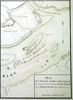 Le succès du siège du fort de pierre et de terre nécessite un bombardement prolongé par la marine britannique sous le commandement de l'amiral Howe, impliquant également des batteries terrestres, du 26 septembre au 16 novembre 1777. L'impasse et la défense du fort donnèrent à Washington et à l'armée continentale le temps de se déployer en toute sécurité pour la bataille de White Marsh, puis de se retirer à Valley Forge. Washington reçut des avertissements des généraux David Porter et Charles Lee, stationnés sur la rivière Schuylkill à Philadelphie, selon lesquels les Britanniques effectuaient des communications de nuit sur la rivière à l'aide de petites embarcations. Dans une lettre datée du 4 novembre, Washington conseille à Hazelwood de faire tout ce qui est en son pouvoir pour mettre un terme à ces activités[19], mais les efforts de Hazelwood pour mettre fin aux communications sont loin d'être efficaces. Plusieurs jours avant la chute du fort, Washington envoya une autre lettre à Hazelwood pour s'enquérir de sa situation, lui demandant instamment de rester à son poste avec la flotte après la chute du fort afin d'entraver et de prolonger les opérations britanniques suffisamment longtemps pour permettre au fleuve de geler, empêchant ainsi le passage des navires de ravitaillement vers Philadelphie jusqu'au dégel du printemps[20].