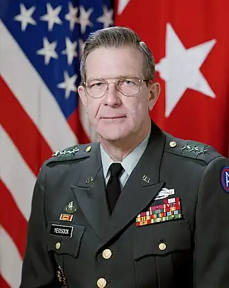 - ↑ (en) Army Executive Biographies, Headquarters, Department of the Army, , « Major General John J. Yeosock », p. 477.