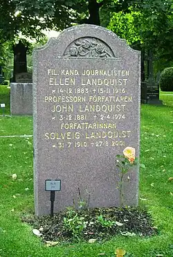 John Landquist a été marié à Elin Wägner de 1910 à 1922[3].