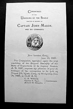 - ↑ John Mason. A Brief History of the Pequot War: especially of the memorable taking of their fort at Mistick in Connecticut in 1637 (Boston: S. Kneeland and T. Green 1736).
