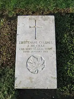 John Alexander McCrae (Guelph (Canada) - Wimereux ) est un médecin militaire canadien. Il est connu comme l'auteur du poème Au champ d'honneur (In Flanders Fields).