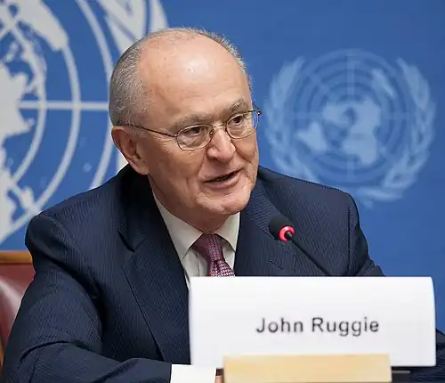 En 2005, John Ruggie est nommé représentant spécial pour les entreprises et les droits de l'Homme (Special Representative (SRSG) on Business and Human Rights) par Kofi Annan, alors secrétaire général des Nations unies. Il est prolongé dans cette mission par Ban Ki-moon.