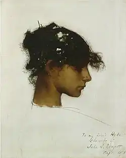 - ↑ L'ami de Sargent, Vernon Lee fait référence à son « amour revendiqué pour l'exotisme […] de son amour inavoué des types de beautés rares, pour leur incroyable élégance », cité par Evan Charteris, John Sargent, Londres et New York, 1927, p. 252.