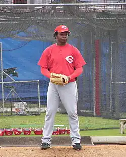 - ↑ (en) « Newly signed, Cueto vows to stay hungry », le 6 mars 2011, sur reds.mlb.com.