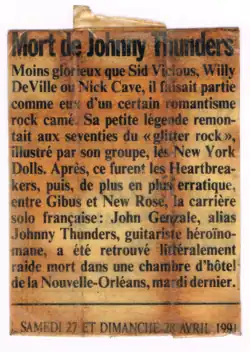 John Anthony Genzale Jr, né le à New York et mort le à La Nouvelle-Orléans, plus connu sous le nom de Johnny Thunders, est un guitariste et chanteur de rock américain. Il a été le guitariste soliste du groupe The New York Dolls de 1972 à 1975. Il a ensuite fondé le groupe The Heartbreakers avant de s'engager dans une carrière solo.