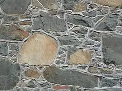 Un mur à pierres sèches est un mur qui est construit en moellon ou en meulière sans aucun mortier[M 2] ; un mur brut ou mur nu, mur qui n'est ni enduit ni jointoyé[M 2]. Un mur jointoyé est un mur qui est construit de moellons ou de briques, etc., et dont les joints sont remplis à l'affleurement avec du plâtre ou du mortier.