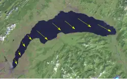 C'est un vent imprévisible qui peut s'abattre avec fougue sur le lac. Ce front de rafales est caractérisé au début par de brusques et fortes rafales avant de se régulariser. Les signes avant-coureurs sont notamment la formation de cellules orageuses sur les crêtes du Jura. Pouvant atteindre plus de 100 km/h[2], il est très redouté des navigateurs.