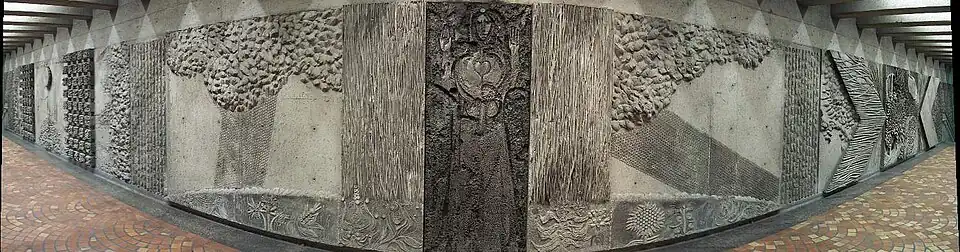 - Université Laval, pavillon Adrien-Pouliot, L'Homme devant la science, 1963, mosaïque en céramique[21]