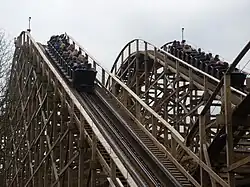 - ↑ Les montagnes russes en bois à double voie en Europe sur rcdb.com