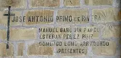Primo de Rivera devient le principal martyr du régime franquiste[49]. À la fin de la guerre civile, son corps est exhumé pour être enterré, le , dans la basilique du monastère de l'Escorial. Puis, en 1959, sur ordre du général Franco, il est à nouveau exhumé, pour être réinhumé dans la basilique Sainte-Croix del Valle de los Caídos.