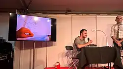 Le dessinateur (à gauche) à une masterclass du Festival Spirou de Bruxelles, en septembre 2016.