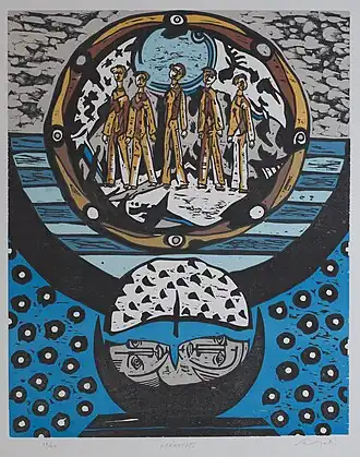 - ↑ José San Martin, La Murène mélancolique, bois gravé, tirage 50 exemplaires in L'Estampe, objet rare.