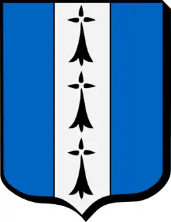 «D’azur à un pal d’argeant, chargé de troys ermines de sable »