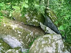 - Les dolmens de la Pierre aux Loups[36] et de la Grandière[37] et le menhir des Outres[38], l'ensemble de ces trois mégalithes étant classé au titre des monuments historiques depuis 1989.