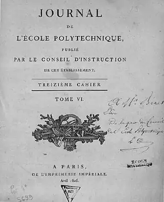 - ↑ Paris École Polytechnique, Journal de l'École Polytechnique, vol. 1, (lire en ligne)