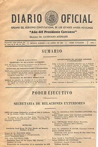 - Chronologie des journaux officiels du Mexique
