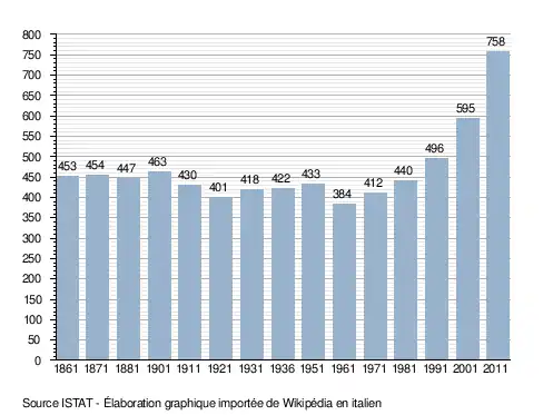 - ↑ (it) Popolazione residente e bilancio demografico sur le site de l'ISTAT.