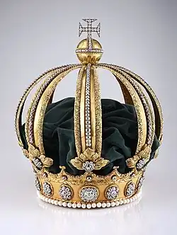 Fabriquée en 1822 pour le couronnement de Pierre Ier par l'orfèvre Manuel Inácio de Loiola, la couronne de Pierre Ier se conçoit presque comme un inverse de la couronne royale du Portugal. La structure en or massif était ornée de 639 diamants et décorée de multiples éléments végétaux et d'armoiries impériales gravées. Son sommet est garni d'une sphère armillaire surmontée d'une croix pattée. Vidée de ses joyaux lors de la création de la couronne de Pierre II en 1841, sa dernière utilisation remonte au rapatriement de la dépouille de l'empereur Pierre Ier en 1972.